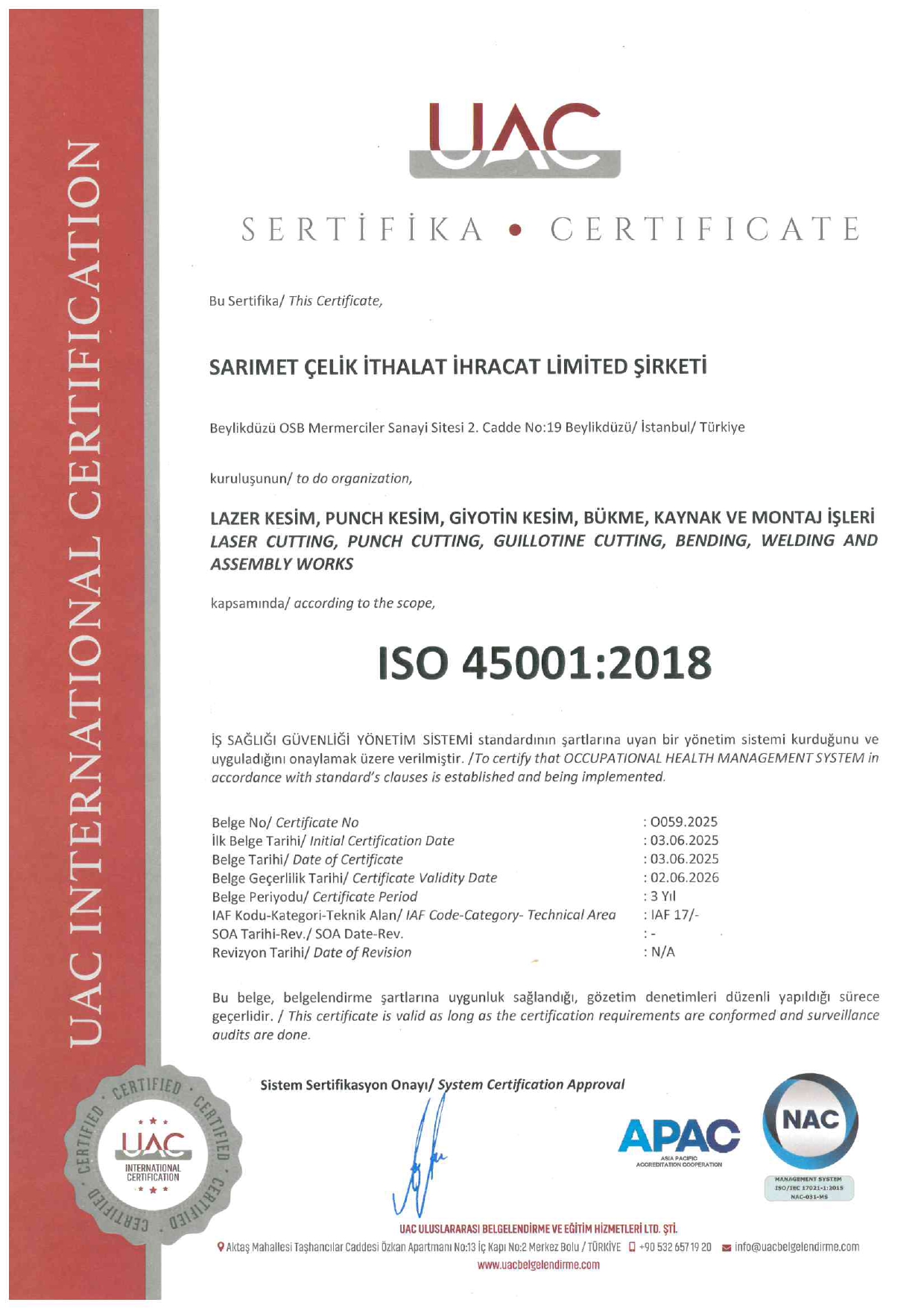 With the Integrated Management System we have established, we meet the needs of our customers at every stage and we are always committed to the best quality by constantly improving our system.